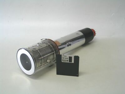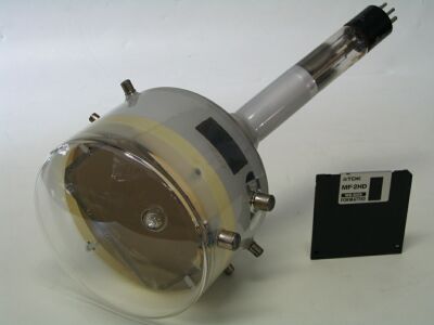 TUBO ORTHICON DA 4,5" in confronto con floppy disk da 3,5" |